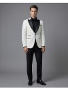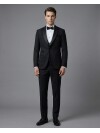 Merging the timeless power of black with a sharp-lined peak lapel design, this vested tuxedo offers one of the most distinguished examples of high tailoring art. The minimalist single-button detail highlights the modern form of the jacket, while the slim fit cut follows the body lines with perfect harmony. The vest detail at the heart of the suit ensures you maintain a fit and authoritative image without compromising your style, even in jacket-off use. The flap pocket details, supporting the classic texture of the design, complete the visual integrity, while the high-quality full lining guarantees the fabric maintains its form throughout the day, offering comfortable wear. The double vent design maximizes mobility and supports the dynamic appearance of the modern cut from every angle. An indispensable option for weddings, special galas, and black-tie events, this black suit is a candidate to be the most noble piece in your wardrobe with its sophisticated details.