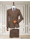 Kahverengi çizgili kruvaze erkek takım elbise, zamansız çizgili deseniyle güçlü ve şık bir görünüm sunar.