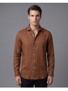 Kahverenginin doğal ve sıcak tonlarını %100 premium keten kumaşın karakteristik dokusuyla buluşturan bu uzun kollu gömlek gardırobunuza sofistike bir hava katar. Regular fit yani standart rahat kalıbı sayesinde gün boyu konforlu bir hareket alanı sunarken klasik yaka tasarımı ve normal manşet yapısı ile zamansız bir tarz vaat eder. Ketenin doğal ve nefes alan yapısı sayesinde en sıcak günlerde bile ferah bir kullanım deneyimi sağlayan bu parça özellikle bej, krem veya ekru tonlarındaki pantolonlarla kusursuz bir uyum yakalar. Kaliteli dikimi ve otantik görünümüyle her mevsim tercih edilebilecek çok yönlü ve şık bir seçenektir.
