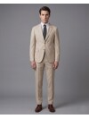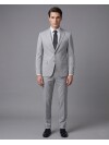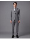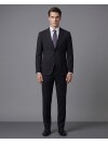 Navy blue, the most reliable color of the professional world, meets the superior ease of a comfort fit in this sophisticated model. The traditional notch lapel design and two-button front closure are complemented by functional flap pockets to present a silhouette that is both classic and contemporary. Thanks to high-performance fabric technology that maintains its shape all day long, this suit is perfect for men who lead a busy lifestyle and refuse to compromise on mobility. Its breathable structure and relaxed tailoring ensure you feel comfortable and stylish from morning meetings to evening social events.