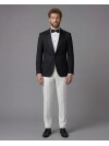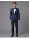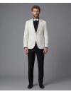 This premium suit combination is a masterclass in modern tailoring. The navy blue jacket is defined by its bold peak lapel, which elongates the torso and projects a powerful, formal aesthetic. Its single-button design ensures a clean and streamlined front, while the classic flap pockets add a touch of traditional functionality. Crafted with a focus on all-day wearability, the comfort fit silhouette allows for a relaxed feel without losing its sharp structure. The jacket is fully lined for a premium finish and features double back vents to provide maximum freedom of movement. When paired with the expertly tailored white trousers, the navy jacket creates a prestigious contrast that stands out from standard formal wear. This ensemble is designed for the modern gentleman who values both comfort and a high-impact visual presence.