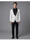Blending the nobility of white with modern tuxedo aesthetics, this vested tuxedo represents a clear, fresh, and distinguished style for your most special days. The soft-transition shawl lapel design merges with a minimalist single-button detail at the front, adding a modern and smooth visual balance to the purity of white. The vest, which ensures the suit's integrity and authoritative stance, emphasizes the body form thanks to its slim fit cut, maintaining a sophisticated and fit look even when the jacket is removed. The double welt pocket details enhance both functionality and visual elegance, adding a classic depth to the design, while the high-quality full lining guarantees that the jacket maintains its smooth form throughout the day. The double vent design maximizes mobility and supports the fit appearance of the modern cut from every angle, offering comfort and grace together. An ideal choice especially for summer weddings, beach ceremonies, and high-prestige outdoor events, this white suit brings together timeless elegance with a bold design language.