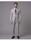 Klasik terzilik sanatını modern çizgilerle buluşturan bu açık gri takım elbise, ince çizgili deseniyle daha uzun ve fit bir silüet sunar. Keskin sivri yaka tasarımı ve iki düğmeli ön kapamasıyla maskülen bir zarafet oluşturan bu model, kapaklı cep detaylarıyla formunu korur. Tam astarlı yapısı sayesinde konforlu bir kullanım sağlarken, çift yırtmaç özelliği hareket alanınızı genişletir. Açık gri tonunun verdiği çok yönlülük sayesinde farklı renklerdeki gömlek ve aksesuarlarla kolayca kombinlenebilir, her ortamda dikkatleri üzerinize çekmenize yardımcı olur.