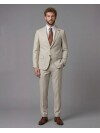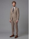 The calm and noble stance of the color beige is reimagined with this special suit design. The assertive peak lapel construction of the jacket gives the suit a modern and masculine character, creating a sophisticated look. The comfort fit cut, which centers on freedom of movement, helps you draw a relaxed and fit silhouette without restricting your body lines. High-quality full-lining craftsmanship on the interior perfects the drape of the jacket over the shoulders and torso while ensuring the fabric's texture is preserved for many years. With its functional flap pockets and elegant two-button structure, this suit is a candidate to be the most special piece in the wardrobe for men who love natural colors but do not want to compromise on style.