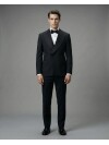 Combining traditional tailoring with modern engineering, this black tuxedo effortlessly provides layered elegance thanks to its integrated vest design built into the jacket. The jacket, presenting an assertive stance with its sharp peak lapel, creates a sophisticated silhouette by merging the double-breasted style with a minimalist single-button detail. Functional flap pockets preserve the classic touch of the design, while the slim fit cut, which perfectly follows the body lines, takes modern aesthetics to the highest level. The high-quality full lining in the internal structure ensures the jacket maintains its form even during long-term use while offering a comfortable experience. The double vent detail at the back supports the fit appearance without restricting your freedom of movement. A visionary choice for weddings, galas, and prestigious ceremonies, this vest-effect double-breasted suit brings together the nobility of timeless black with innovative details.
