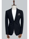 The black jacket, a timeless piece of elegance and sophistication, is an essential part of every man’s wardrobe. Its mono collar design creates a strong and refined presence, perfectly complementing your style. The flap pocket details combine functionality with aesthetics, while the double-button closure offers classic elegance with a modern twist. The fully lined structure provides comfort and ease, and the double vent detail ensures freedom of movement.