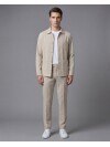 Erkek giyiminin en köklü desenlerinden biri olan dikey çizgileri yenilikçi bir silüetle buluşturan lacivert çizgili gömlek yaka düğmeli takım, hem profesyonel hem de günlük kullanımda iddialı bir duruş sergiliyor. Birinci sınıf nefes alabilen kumaştan üretilen bu beş düğmeli ceket, çizgili desenin boyu daha uzun ve fit gösteren etkisiyle vücuda tam uyum sağlayan slim fit kesimi bir araya getiriyor. Tasarımın imza niteliğindeki gömlek yaka formu ve dört adet stratejik torba cep detayı, klasik bir görünüme sportif bir derinlik ve pratiklik kazandırıyor. Modern iş hayatının temposundan akşam etkinliklerine kolayca uyum sağlayan bu set, içine giyilecek lacivert bir polo yaka tişörtle monokrom bir şıklık sunarken, beyaz bir tişörtle daha dinamik ve taze bir görünüme kavuşuyor. Her detayında kaliteyi ve modernizmi hissettiren bu çizgili takım, gardırobunuza zamansız bir karakter katıyor.