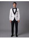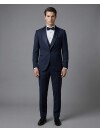 Reinterpreting the classic tuxedo tradition through the depth of navy blue, this vested tuxedo reflects a sophisticated tailoring approach in every detail. The fluid shawl lapel design merges with a minimalist single-button detail at the front to create a modern and smooth silhouette. At the heart of the design, the vest ensures a fit and assertive stance in both jacket-on and jacket-off use, thanks to its slim fit cut that perfectly follows the body lines. The double welt pocket details highlight visual balance and support the elegant structure of the jacket, while the high-quality full lining guarantees that the fabric maintains its form throughout the day. The double vent design maximizes freedom of movement and completes the dynamic appearance of the modern cut from every angle. An ideal choice for weddings, prestigious galas, and formal ceremonies, this navy suit brings together nobility and comfort in a single design.