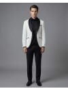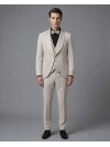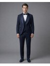 Adding the nobility of navy blue to classic tuxedo aesthetics, this three-piece suit reflects an exquisite taste in every detail. The fluid shawl lapel design merges with the iconic chain button detail at the front, breaking traditional ties with a modern touch. The vest, one of the strongest elements of the three-piece set, promises a flawless silhouette in both jacket-on and jacket-off use with its slim fit cut that perfectly follows the body lines. The minimalist single welt pocket detail supports the smooth texture of the jacket, while the full lining ensures the fabric maintains its form throughout the day. The double vent design provides freedom of movement and completes the modern, fit look from the back. Ideal for weddings, galas, and high-prestige events, this navy blue suit brings together timeless elegance with functional details.