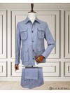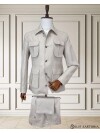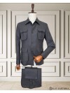 Siyah Keten Safari Model Dört Cepli Takım Elbise