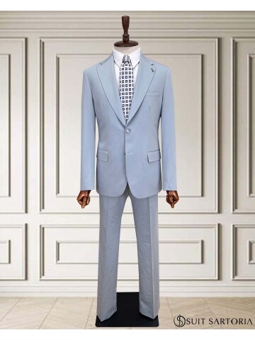 The blue suit combines elegance and modernity with its sleek mono lapel design. Offering a refined and stylish appearance with flap pocket details and a double-button closure, this model ensures comfortable movement thanks to its double vent feature. It’s the perfect choice for men who refuse to compromise on style.
